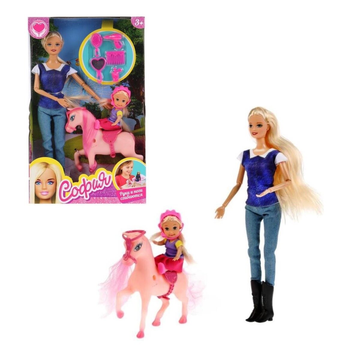 | Комплектация | - кукла София; - дочка; - лошадка; - расчёска; - зеркало; - фен; - гребень. |