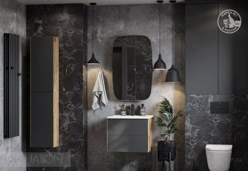 Акватон 1A2580K1AJA00 Набор: Тумба Сохо 60 + Раковина Элина 60, графит софт/дуб веллингтон