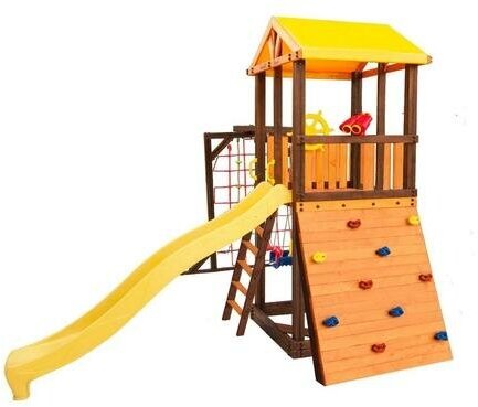| В комплекте | горка, канат, качели, лестница, песочница, сетка для лазания, скалолазная стенка |