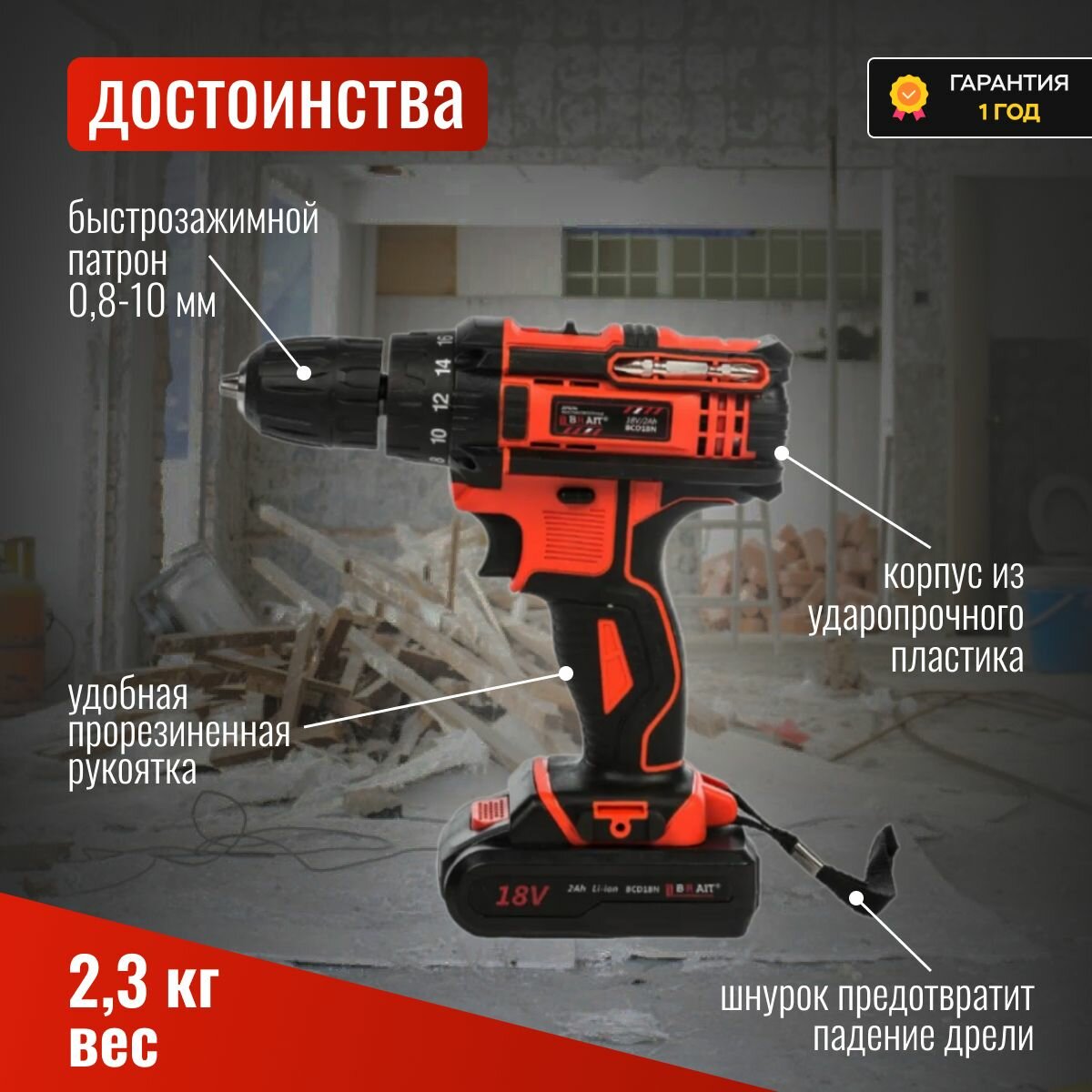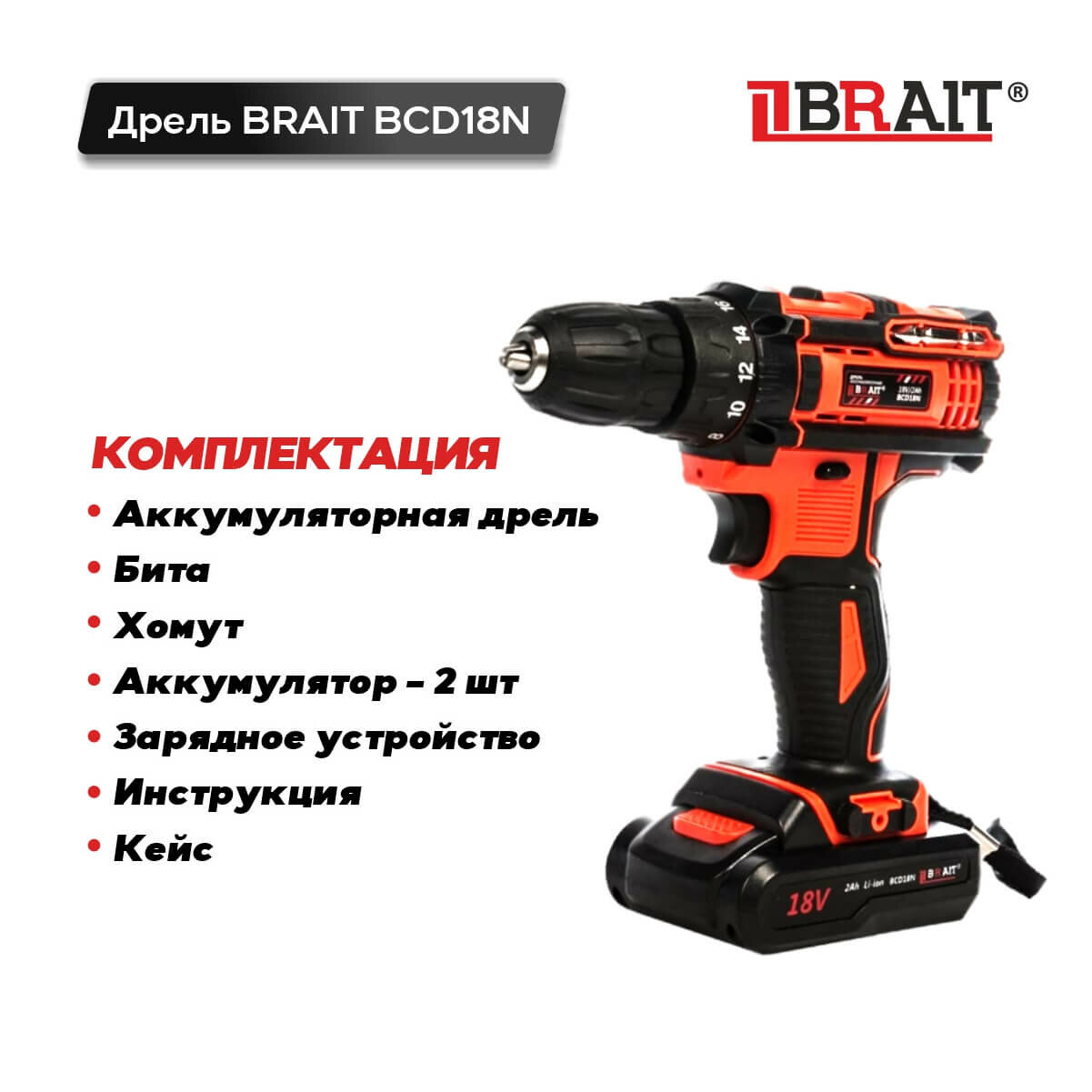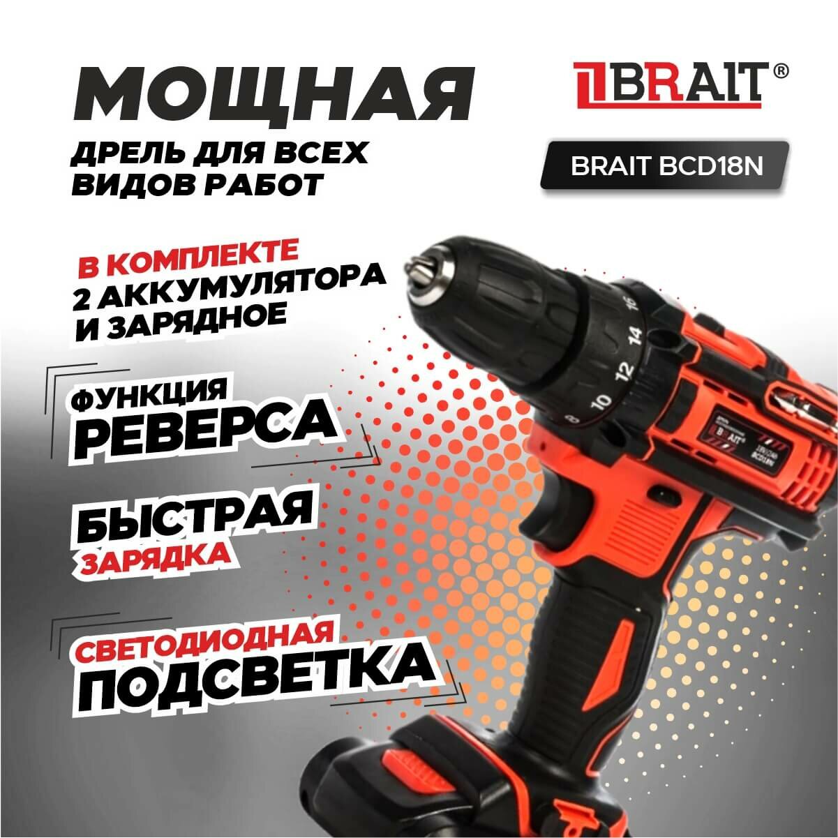 Дрель аккумуляторная BRAIT BCD18N интересное: