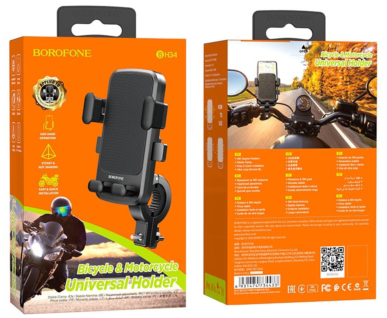 Мотодержатель универсальный Borofone BH34, крепление на руль,вращение на 360 градусов, черный