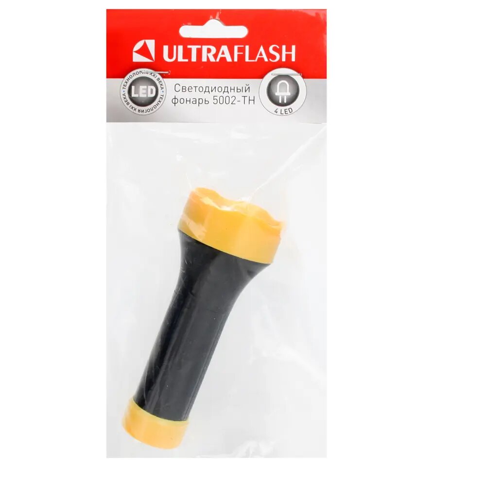 Ultraflash 5002-ТН фонарь, черный, 4LED, 1 реж, 3XR03, пласт, блист-пакет 11785