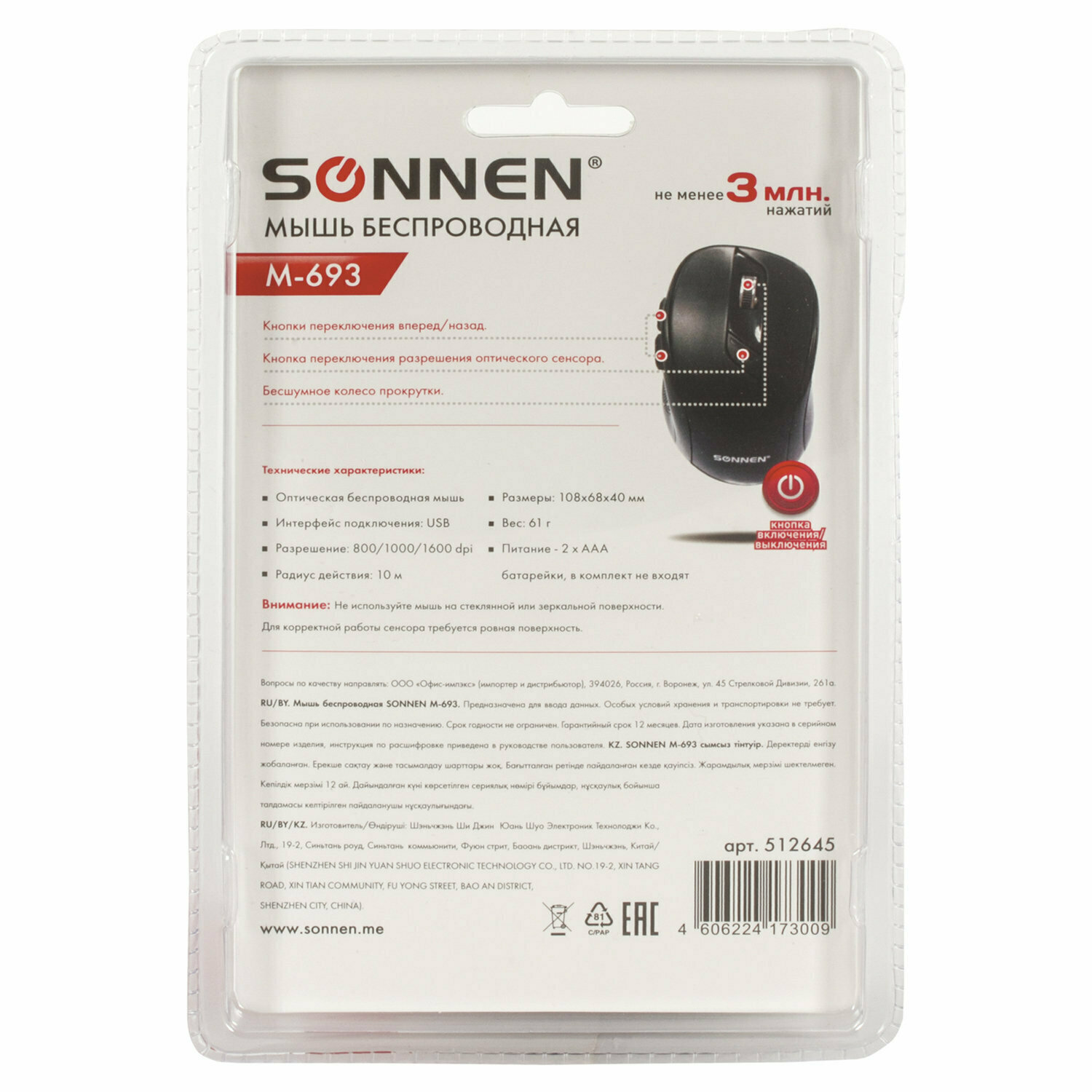 Ниже Вы можете прочитать отзывы на Беспроводная мышь SONNEN M-693, черный, ознакомится с подробными характеристиками, посмотреть интересные обзоры и фотографии на Беспроводная мышь SONNEN M-693, черный.
