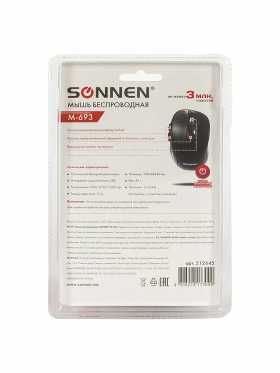 Купить Беспроводная мышь SONNEN M-693, черный