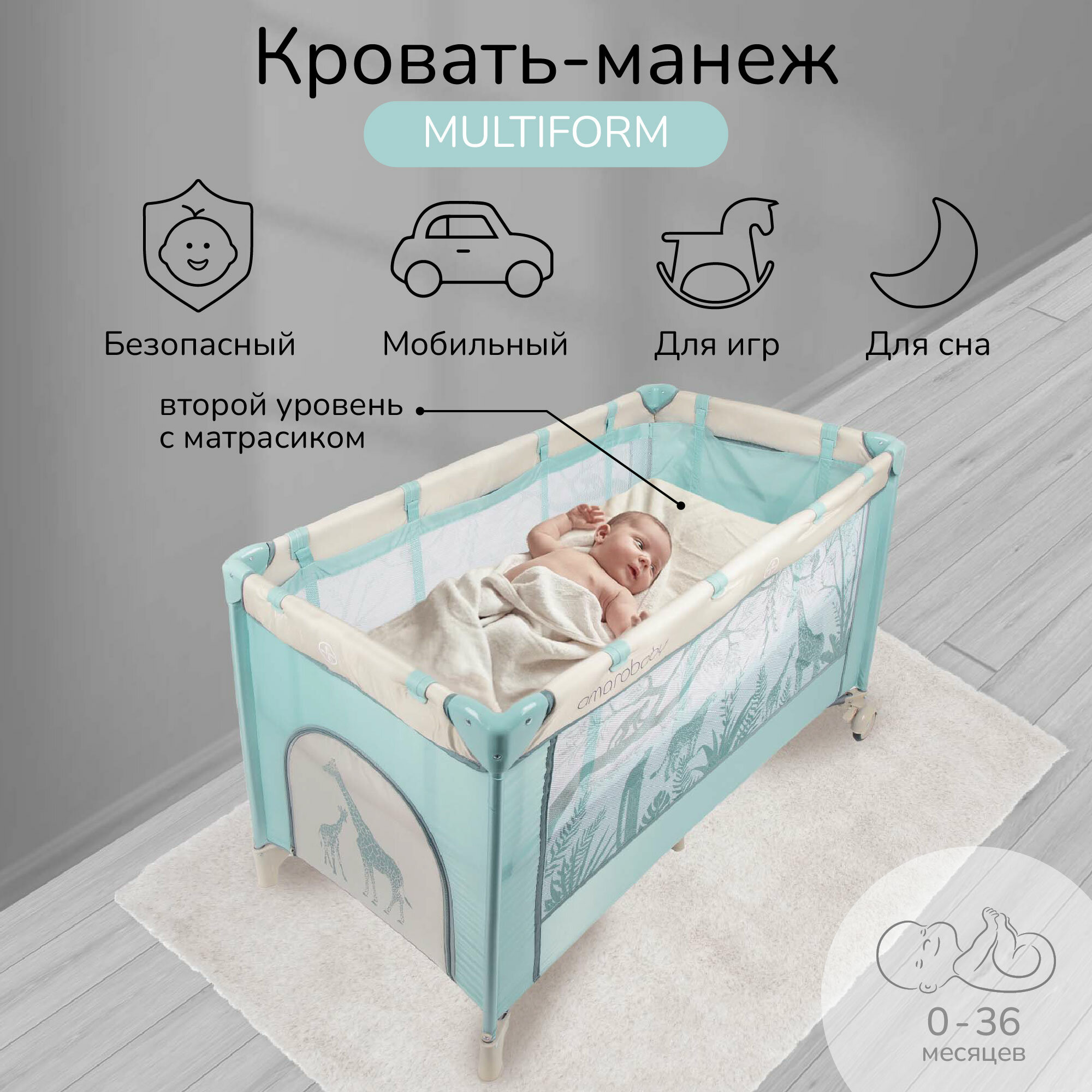 Манеж-кровать Amarobaby MULTIFORM (Safari) прямоугольный, зелёный интересное: