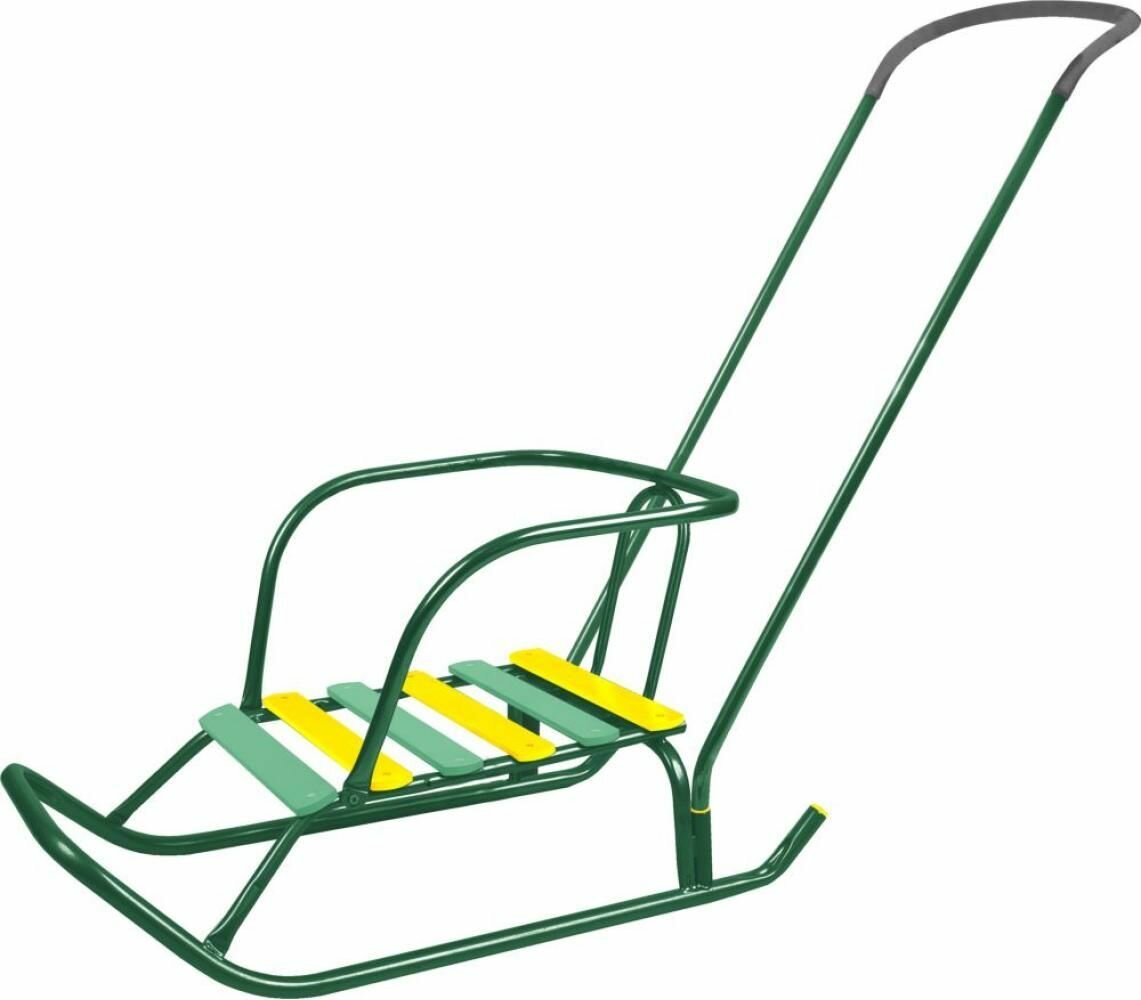 Санки детские Nika Ветерок-6 с ручкой, Сани зимние НИКА со спинкой для детей, зеленые