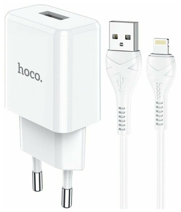 Hoco Сетевое зарядное устройство Hoco N9, USB - 2.1 А, кабель Lightning 1 м, белый