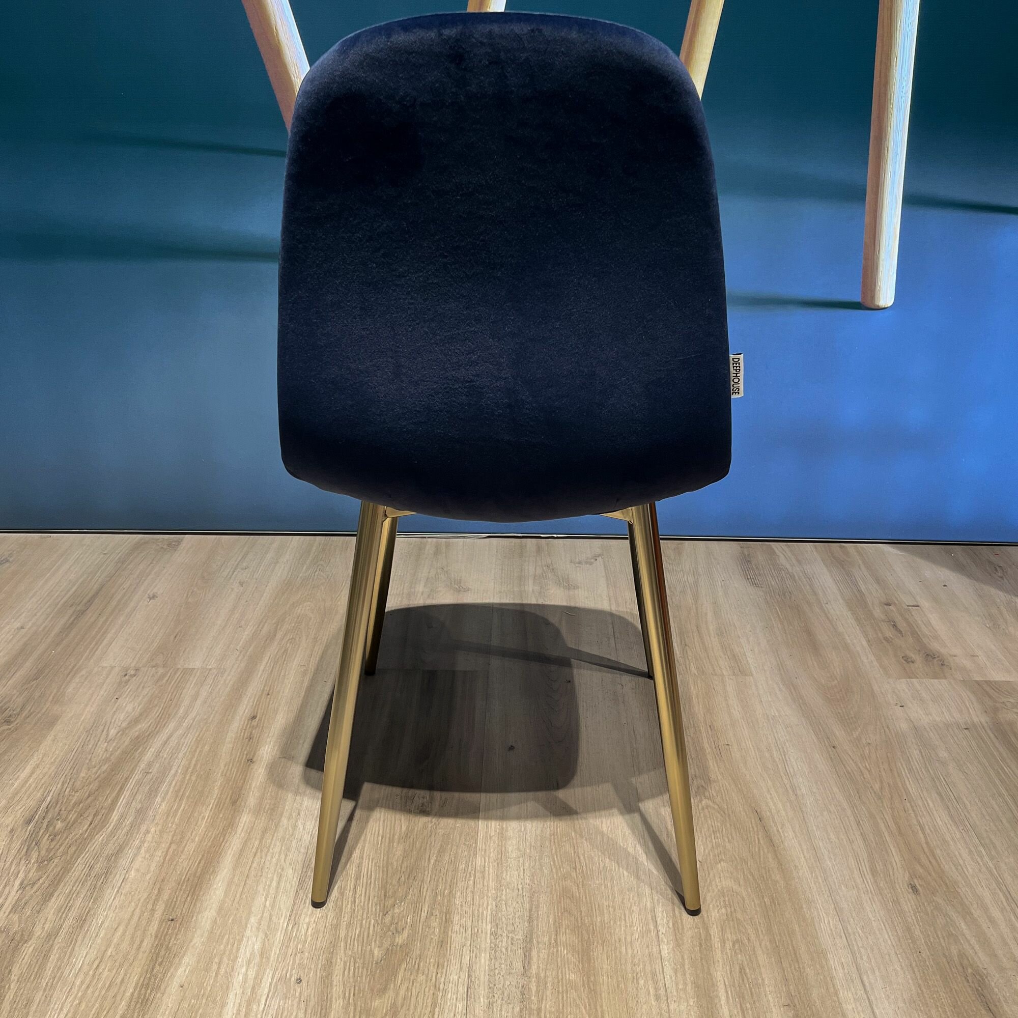 Стул DeepHouse Копенгаген темно-синий бархат ножки под матовое золото для кухни, гостиной