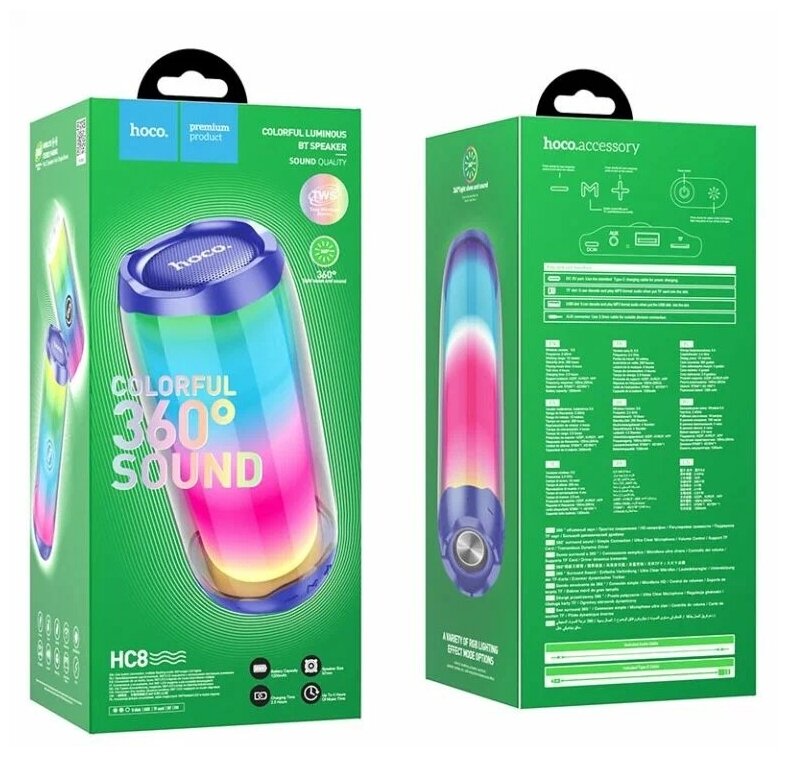 Колонка Bluetooth Hoco, HC8, Colorful 360 sound, Blue