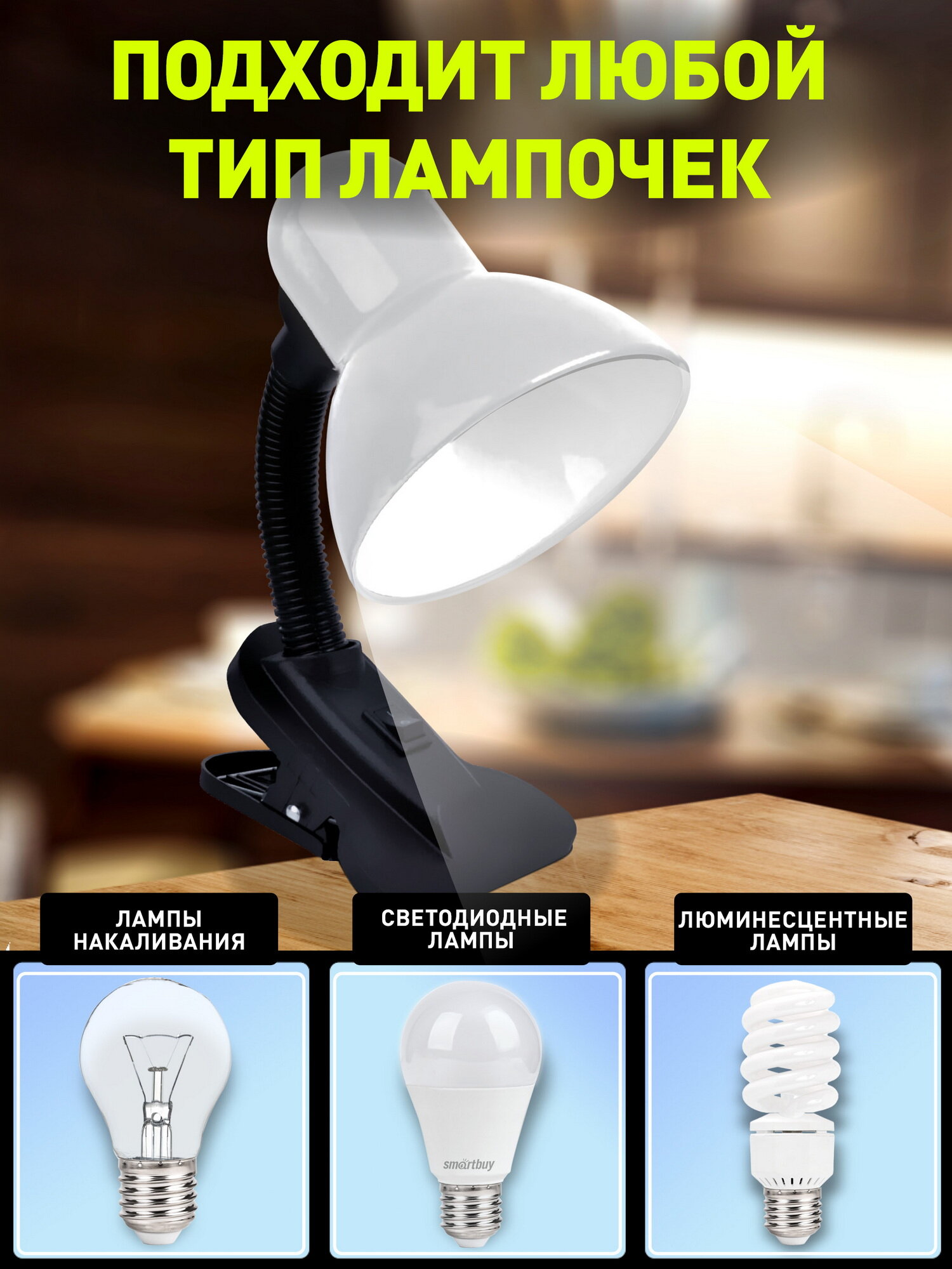 Настольный светильник Smartbuy Е27 с прищепкой , (SBL-DeskL01-White) белый