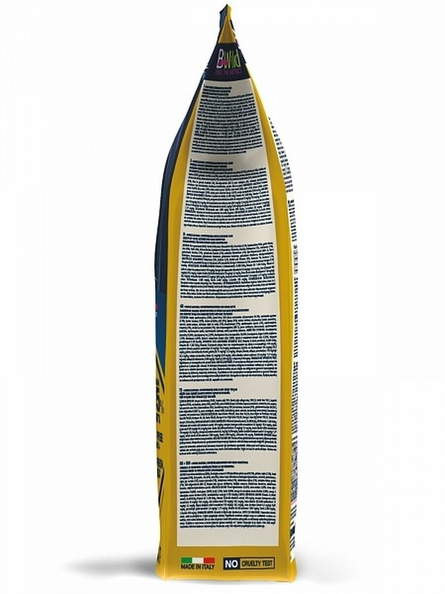 | Состав | Дегидрированное мясо зайца (38%), животный жир 16% (очищенное куриное масло на 99.5%), свежее мясо курицы (12%), тапиока (10%), желтый горох, рис (4%), овес (4%), сухая свекольная пульпа, гидролизованный животный белок, минеральные вещества, пивные дрожжи (источник MOS), яичный порошок (1%,), льняное семя (1%), Дегидрированная морковь (1%), сушеная пульпа томата (1%), волокна гороха (1%), ксилоолигосахариды (XOS 0,3%), юкка Шидигера, экстракт ананаса, сушеная пульпа черники, сушеная пульпа брусники, сушеная пульпа малины, сухой молочный белок. |