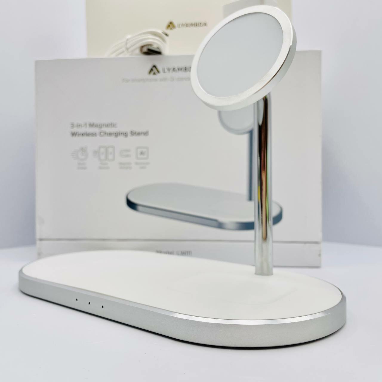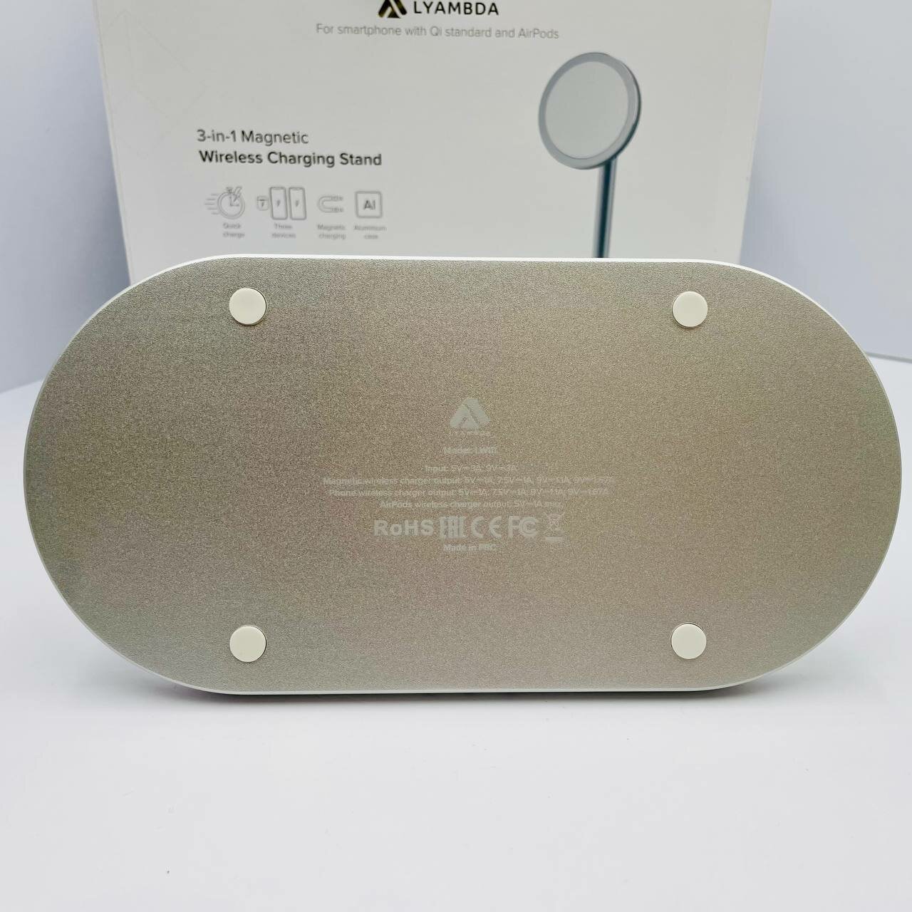 Магнитное беспроводное зарядное устройство для двух телефонов и наушников Lyambda LWI11, Белый