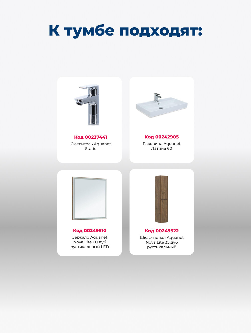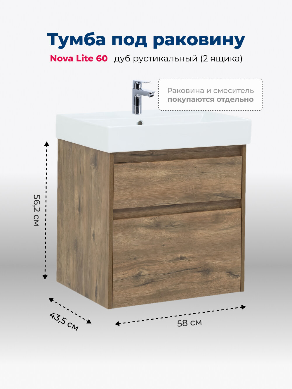Купить Тумба под раковину Aquanet Nova Lite 60 дуб рустикальный (2 ящика)