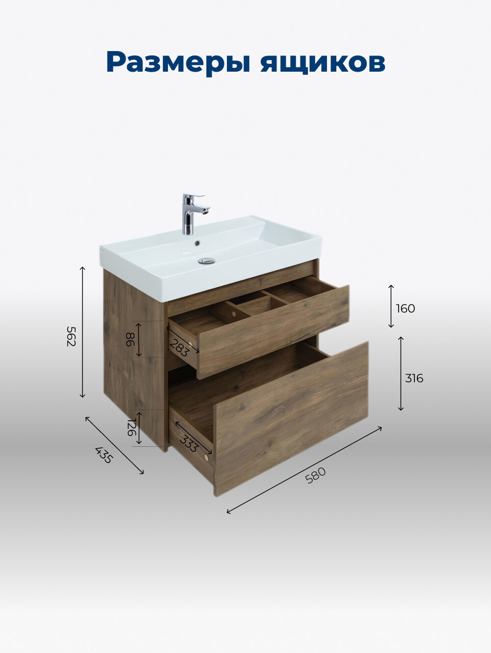 | Комплектация | тумба под раковину, 2 выдвижных ящика; раковина в комплект не входит |