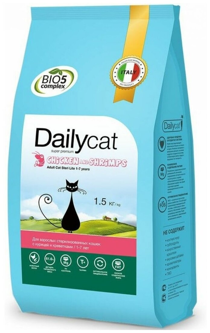 Dailycat Adult Steri lite Chicken & Shrimps Сухой корм для стерилизованных кошек, курица и креветки, 400 г интересное: