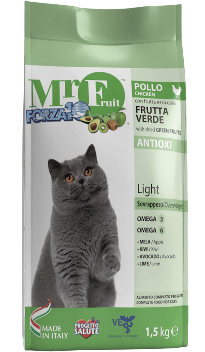 Купить Forza10 Cat Mr Fruit Light Verde сухой корм для взрослых кошек любых пород склонных к полноте с курицей - 1,5 кг