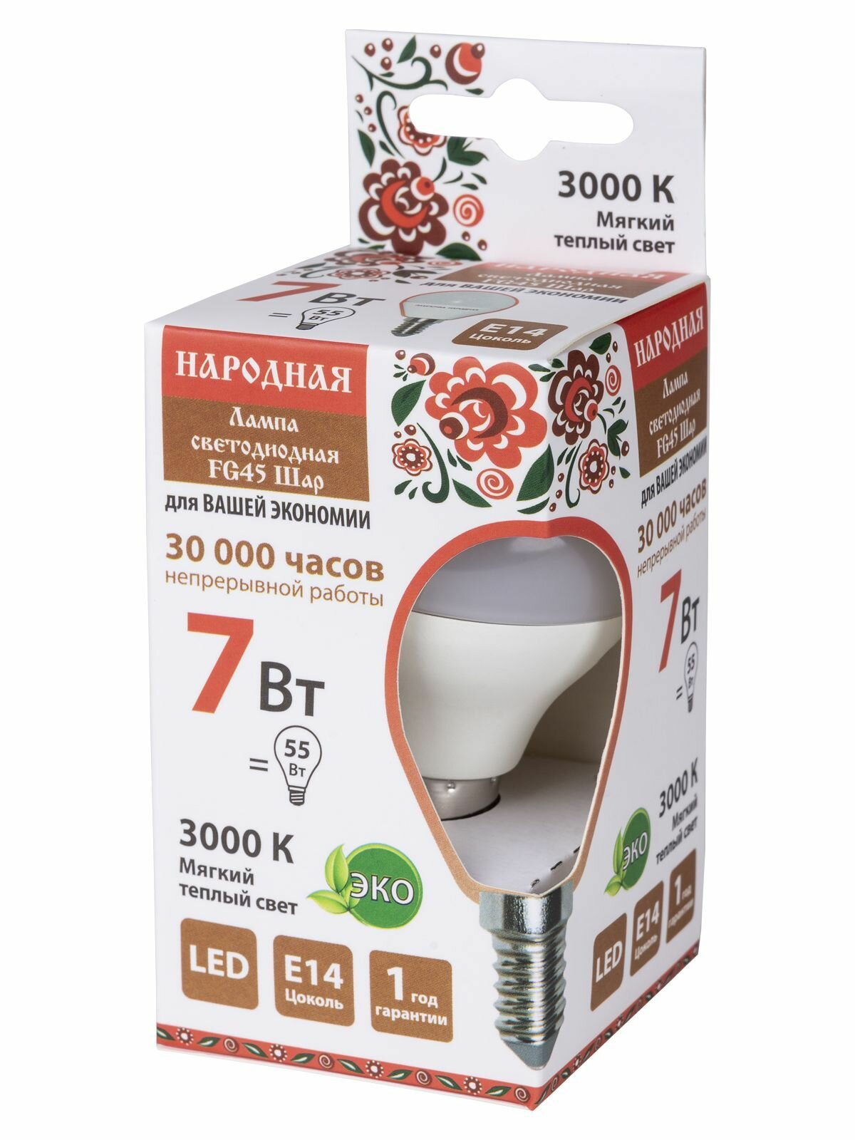 Лампа светодиодная FG45 ШАР 7W 3000 К E14, тепл. Свет (10/100) народная SQ0340-0185 интересное: