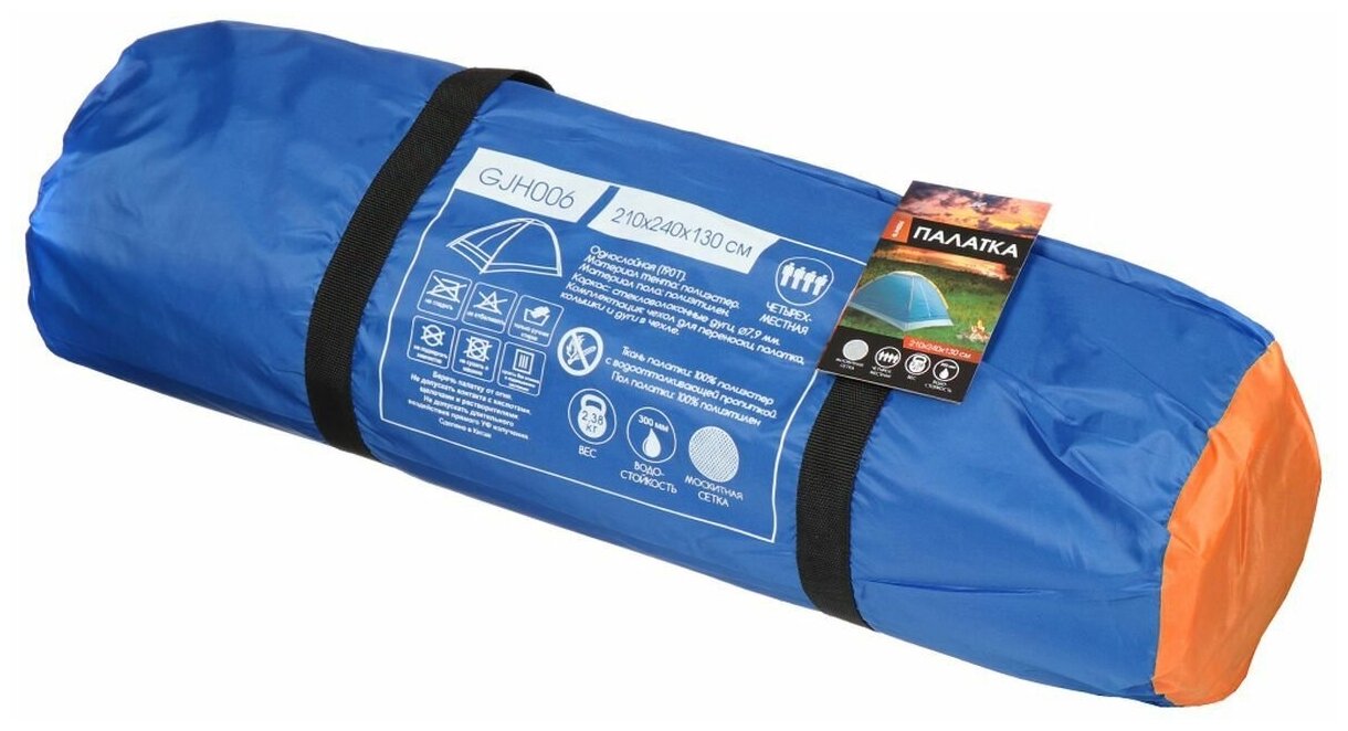 Палатка 4-местная, 240х210х130 см, 1 слой, 1 комн, с москитной сеткой, Green Days, GJH006