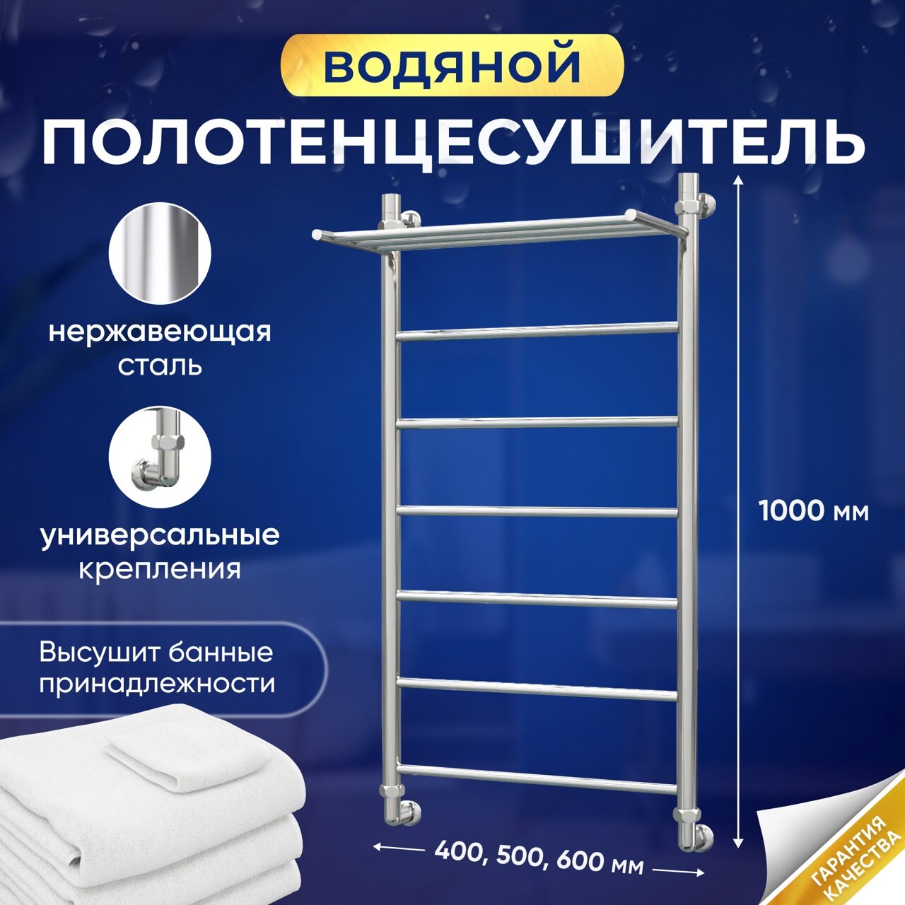 Водяной полотенцесушитель Eriknar Лесенка Прямая с верхней полкой 1000 мм х 400 мм интересное: