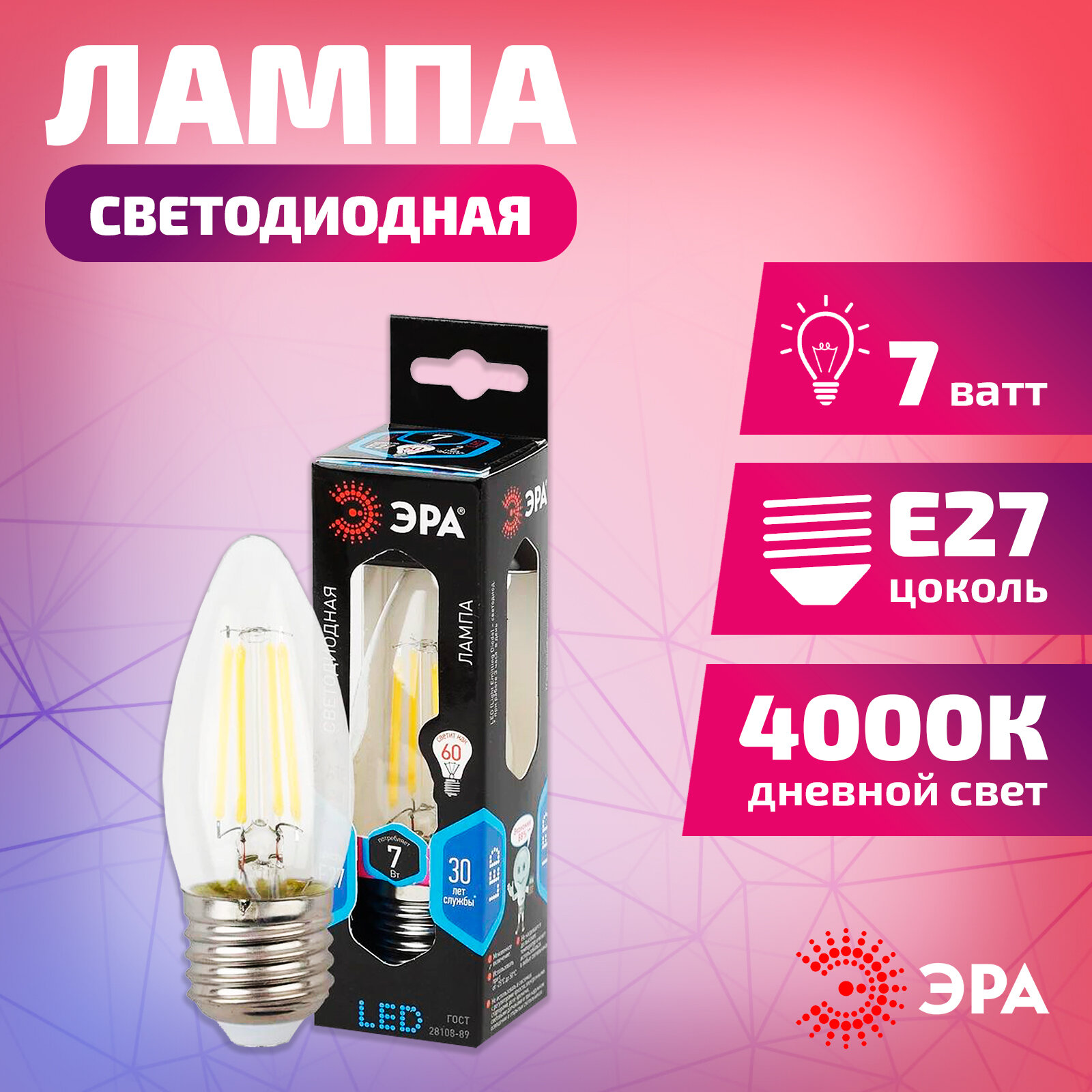 Ниже Вы можете прочитать отзывы на Лампа светодиод 7Вт свеча Е27 4000К 560Лм филамент прозрач F-LED B35-7W-840-E27 ЭРА, ознакомится с подробными характеристиками, посмотреть интересные обзоры и фотографии на Лампа светодиод 7Вт свеча Е27 4000К 560Лм филамент прозрач F-LED B35-7W-840-E27 ЭРА.