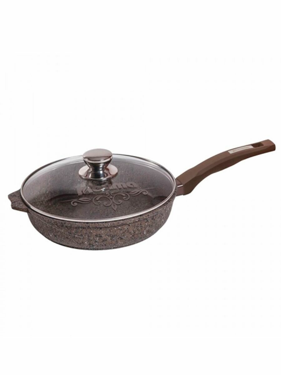 Сковорода мечта 24см с фиксированной ручкой, антипригарное покрытие, стеклянная крышка, Гранит, Premium mokko