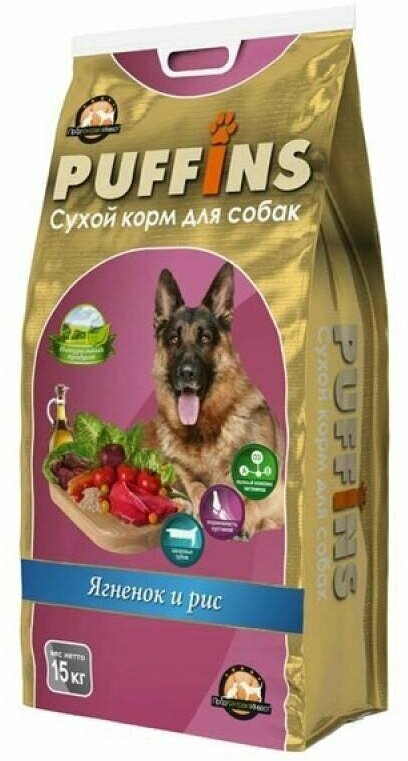 Сухой корм для собак "Puffins" "Ягненок и рис" 15 кг