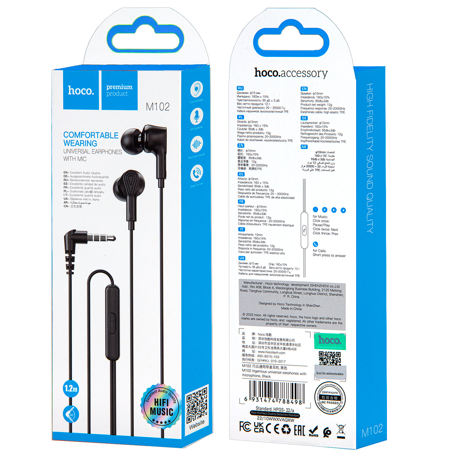 Наушники M102, Ingenious universal earphones, HOCO, вакуумные с микрофоном, черные