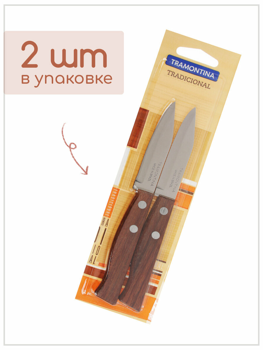 Нож кухонный Tramontina для овощей, Tradicional, лезвие 8 см, 2 шт