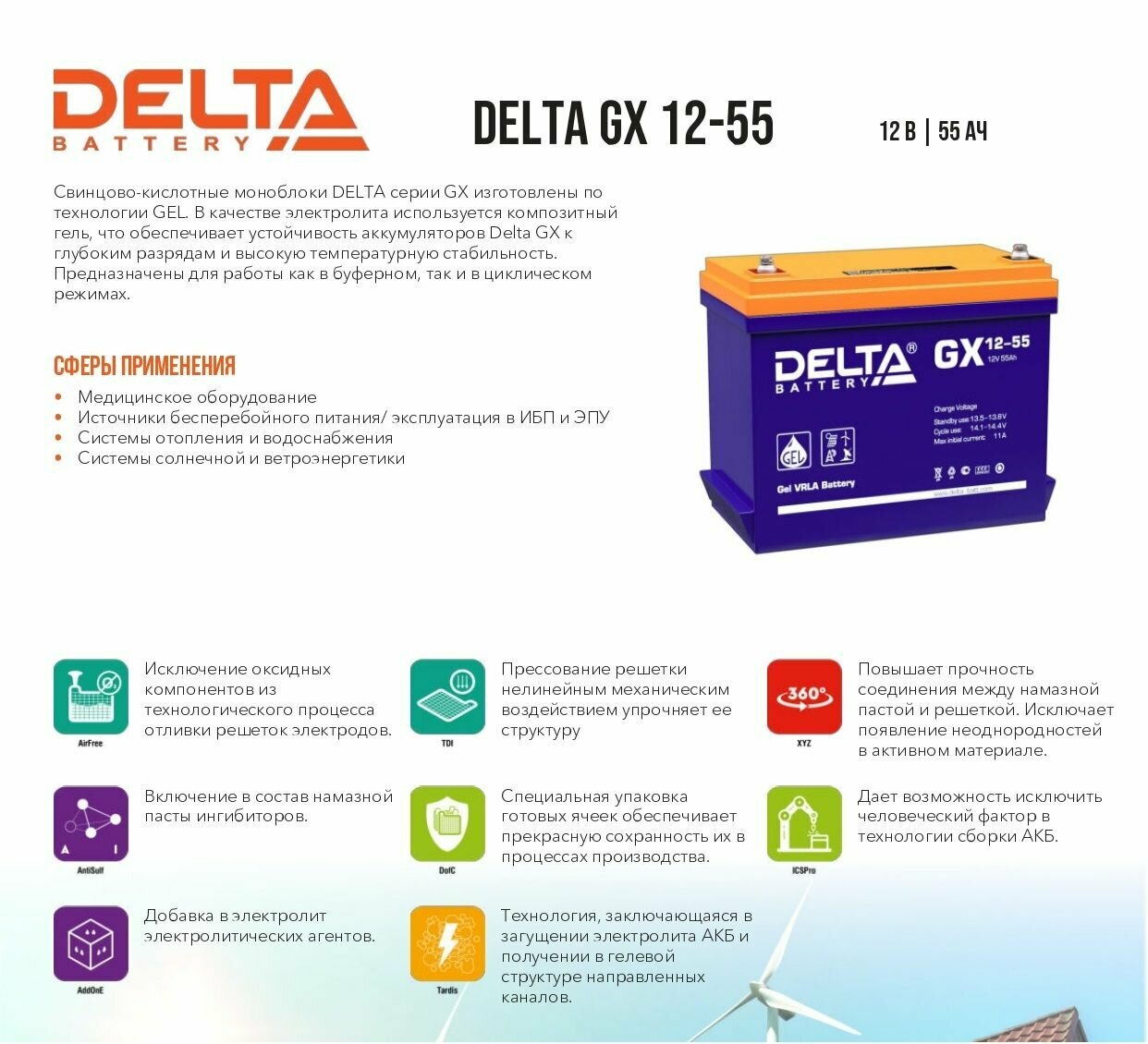 Аккумуляторная батарея DELTA Battery GX 12-55 12В 55 А·ч