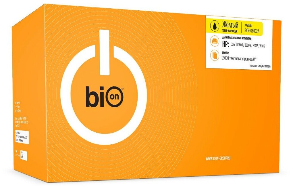 Bion Cartridge Bion Q6002A Картридж для HP Color LaserJet 2600 1600 2605N 2000 стр. , Желтый