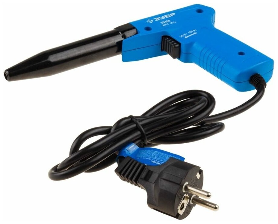 Электропаяльник ЗУБР 30Вт + 130Вт, керамический нагреватель, конус, пистолетная рукоятка, турбо (55408_z01)