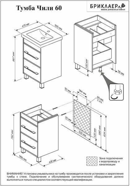 Тумба с раковиной Бриклаер Чили 60 венге интересное: