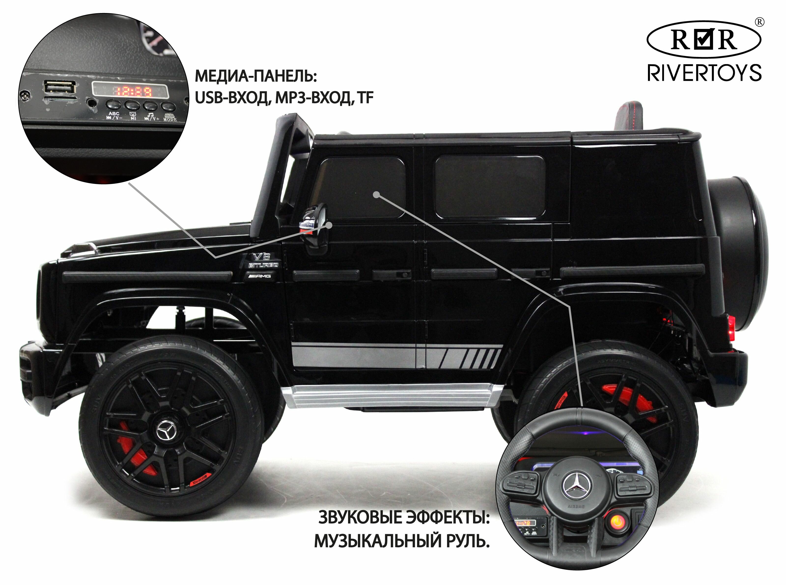 RiverToys Детский электромобиль Mercedes-Benz G63 4WD (K999KK) черный глянец