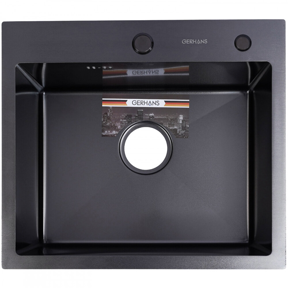 Мойка нержавеющая врезная 500х440х220мм графит, толщ.1мм, с сифоном, отверстие под смеситель, GERHANS