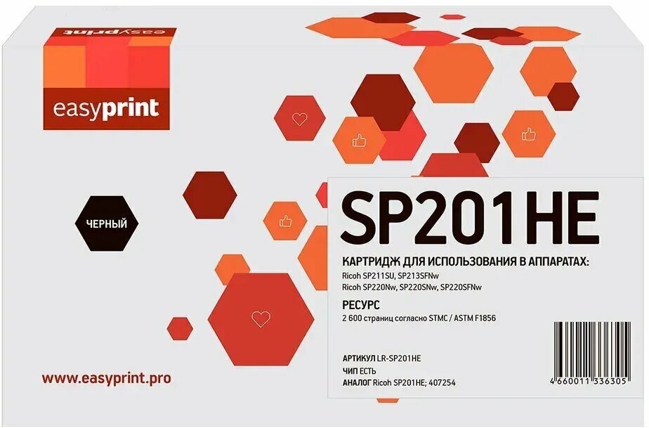 Картридж EasyPrint LR-SP201HE ( SP 201HE )для Ricoh SP211SU/SP213SFNw/SP220Nw/SP220SNw/SP220SFNw (2600стр.) черный, с чипом
