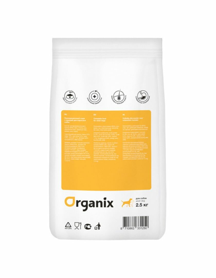 ORGANIX ADULT DOG CHICKEN для взрослых собак всех пород с курицей 2,5 кг