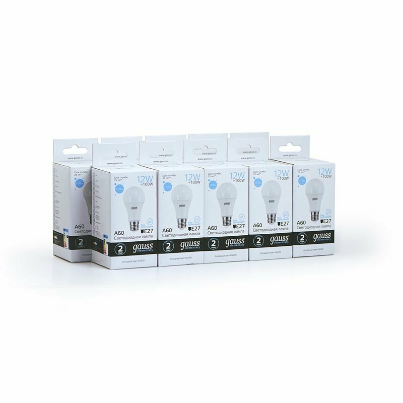 (5 шт)Лампа Gauss Elementary A60 12W 1170lm 6500K E27 LED 1/10/50