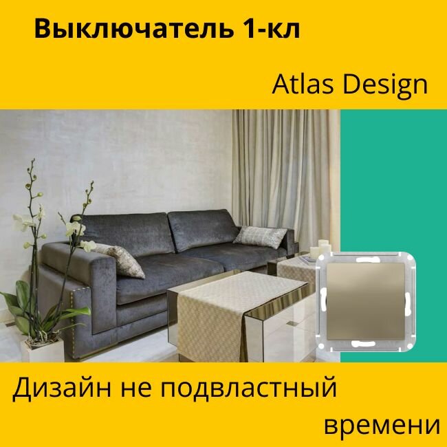 Выключатель 1-кл. 10А, шампань ATLAS DESIGN