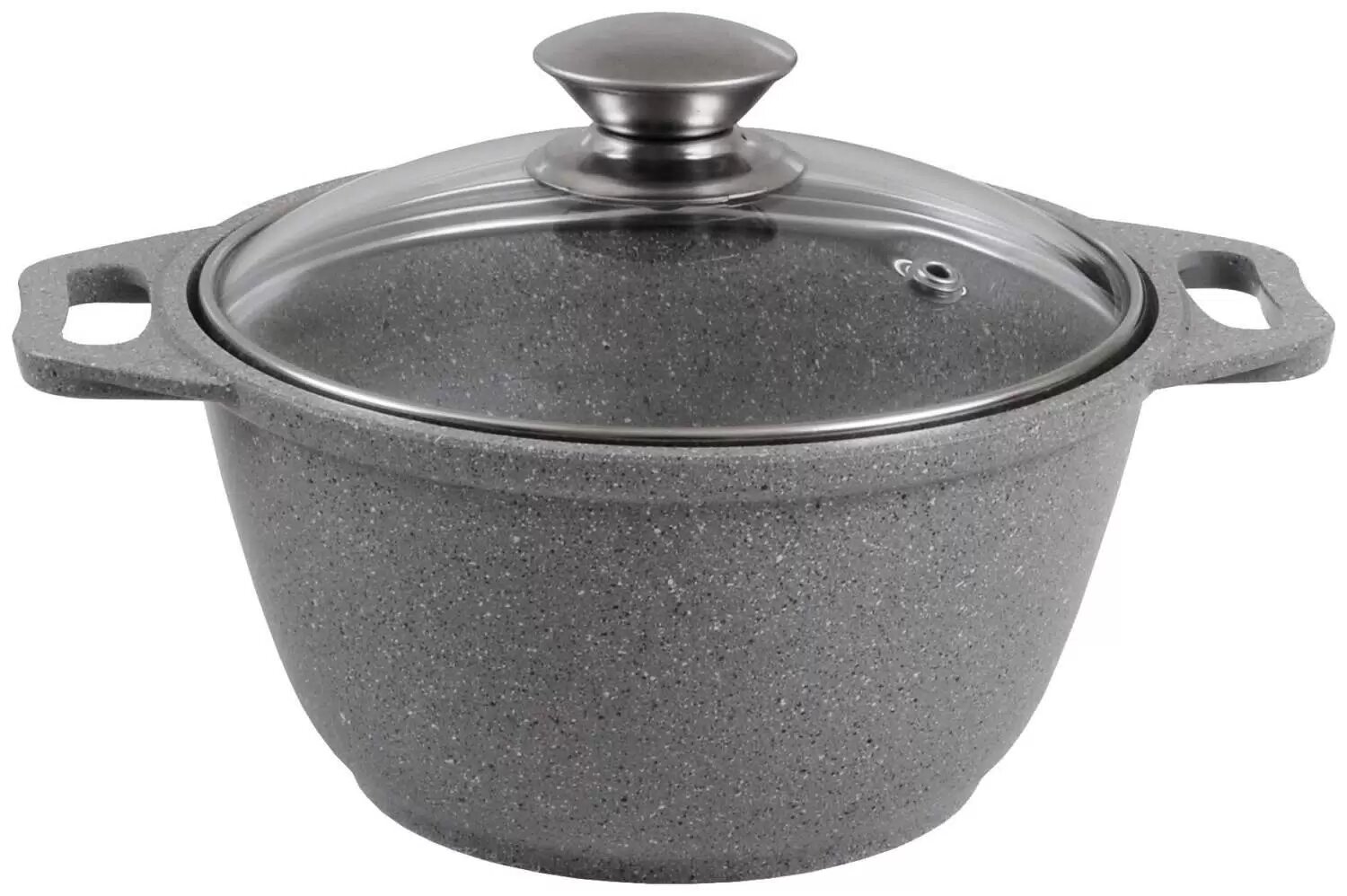 Кастрюля 1л «Мраморная» со стеклянной крышкой, литой алюминий темный мрамор КМ-кмт12а