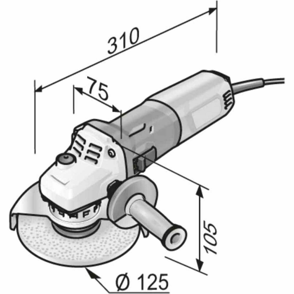 | Комплектация | Угловая шлифовальная машина, защитный кожух, шлифование Ø 125, ручка SoftVib, зажимной фланец, зажимная гайка M 14, торцевой штифтовый ключ, инструкция, коробка |