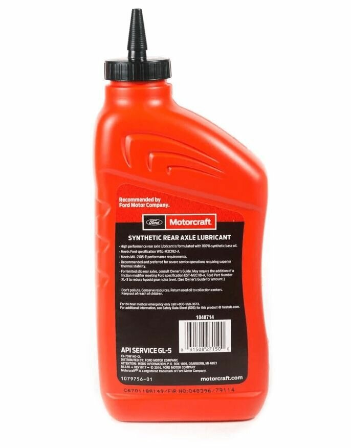 Synthetic Rear Axle Lubricant 75W-140 (946 Мл) (1*12 Шт) Motorcraft Арт. Xy75w140ql MOTORCRAFT арт. XY75W140QL