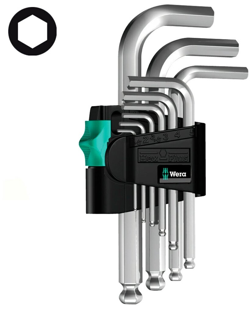 WERA Набор Г-образных ключей с шаром Wera, 9 предметов, WE-133163