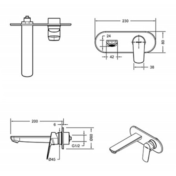 Bravat Встраиваемый смеситель для умывальника Rhein Black P8429564BW-ENG черный матовый (внешняя часть) Bravat