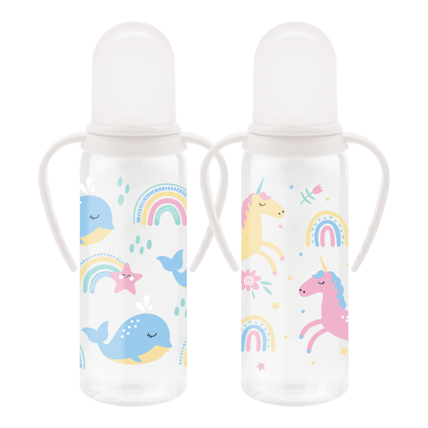 Курносики Бутылочка полипропиленовая с ручками и двумя силиконовыми сосками, 250 мл, с 6 месяцев
