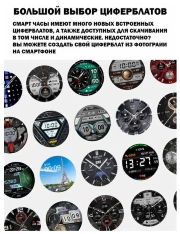 | Плюсы: | Много циферблатов, легко настраиваются, звонки и уведомления приходят, 3 ремешка в комплекте. |