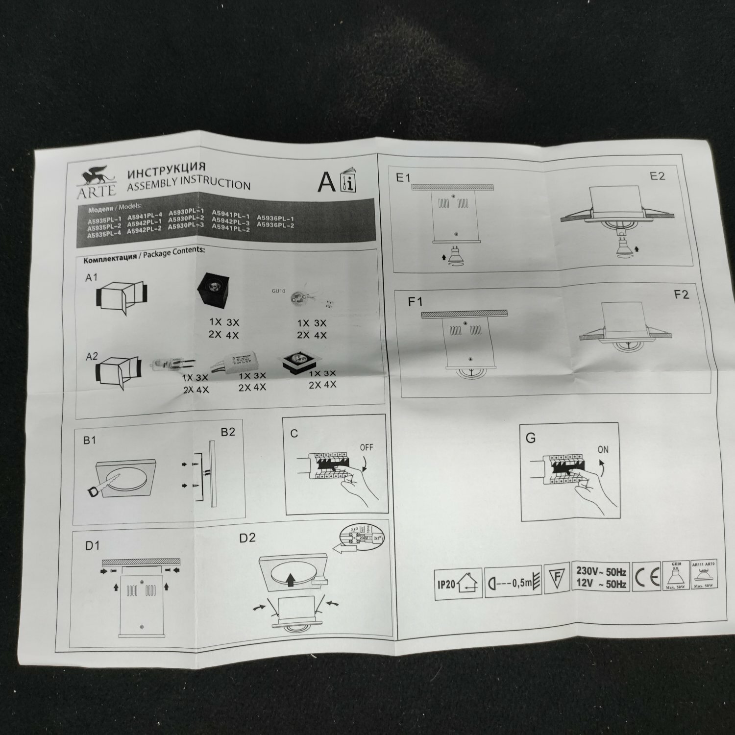 | Подробная комплектация | Люстры и потолочные светильники Arte Lamp A5942PL-1BK |