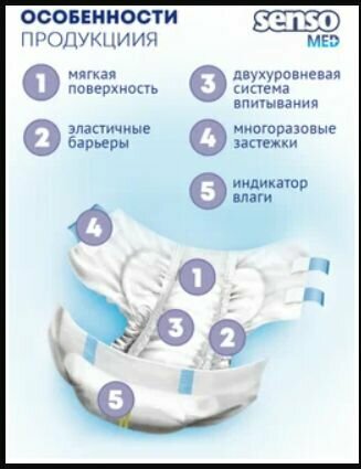Подгузники для взрослых Senso Med Light Extra Large, объем талии 130-170 см, 30шт.