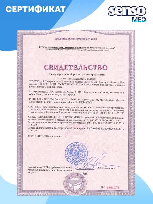 "Senso Med Standart L" и "Senso Light" - подгузники для взрослых с ночными свойствами