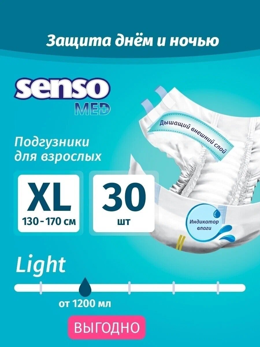 Купить Подгузники для взрослых Senso Med Light XL (130-170 см) 30 шт