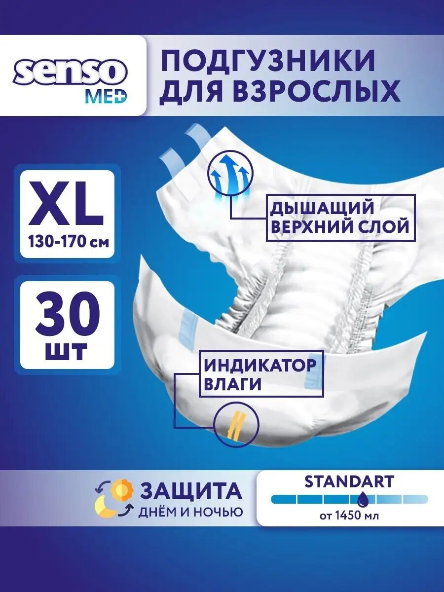 Подгузники для взрослых Senso Standart, XL, 130-170 см, 1 уп. по 30 шт.